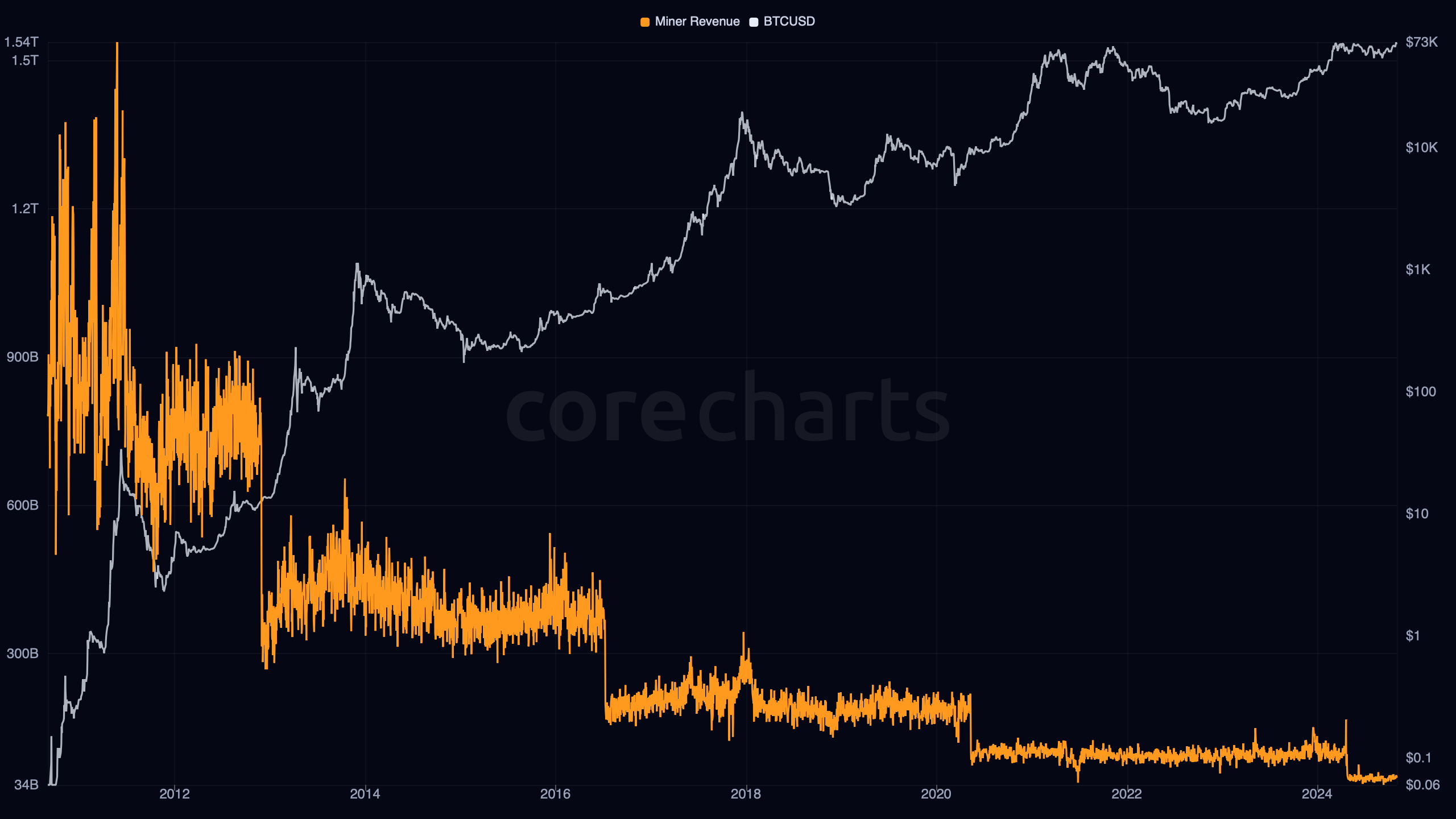 Tracking that total in native units remains one of the cleanest ways to study how Bitcoin funds its own security model.